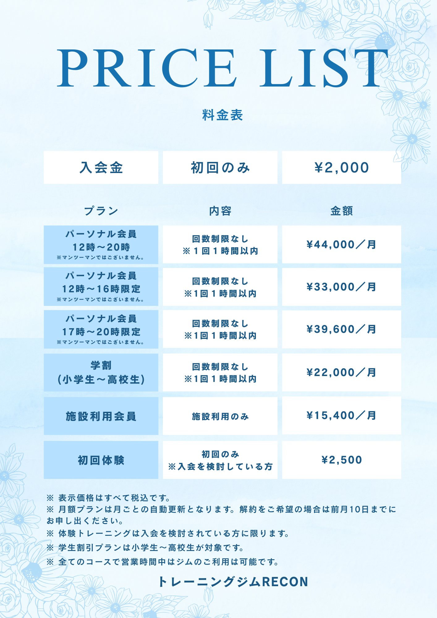 入会案内・利用料金
