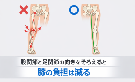 股関節と足関節の向きをそろえると、膝の負担は確実に減る